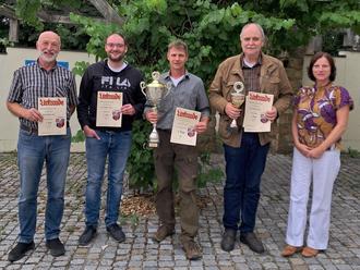 Die erfolgreichen Schützen Peter Schwarz, Franz Schuhbauer, Reinhard Ehemann und Hans Schuhbauer mit Erster Bürgermeisterin Heike Faltermeier (v.l.n.r.).