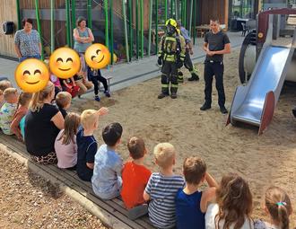 Zum krönenden Abschluss unseres Betreuungsjahres durften unsere Kinder etwas ganz Besonderes erleben. Die FFW Bruck mit ihren Kommandanten Andreas Wagner und zwei Feuerwehrmännern besuchten unsere Einrichtung und gestaltetet mit den Kindern eine tolle und unvergessliche Feuerwehrübung. Die Kinder durften Notrufe absetzen, über die Rettungswege ins Aussengelände gehen und vieles mehr. Die Kinder konnten einen Atemschutzträger bestaunen. Als Highlight wurde zum Abschluß ein „echter“ Feuerwehreinsatz ausgelöst. Dankeschön an Andreas und sein Team für ihren Einsatz.