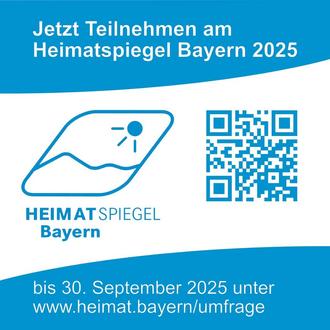 Das Heimatministerium lädt Sie hiermit zum Mitmachen an der Online-Bürgerbefragung Heimatspiegel Bayern ein. Seien Sie dabei unter www.heimat.bayern/umfrage. Die Teilnahme ist bis 30. September 2025 möglich.