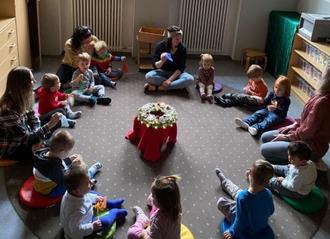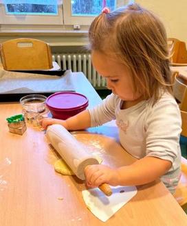 Am 28. November starteten wir jeden Morgen mit einem Adventskreis. Wir zündeten die Kerzen am Adventskranz an, hörten die Weihnachtsgeschichte, sangen ein Lied oder spielten ein Fingerspiel. Um uns die Zeit bis Weihnachten außerdem noch zu versüßen, backten wir Butterplätzchen.