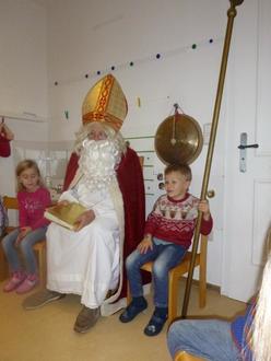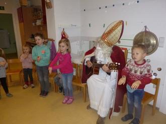 Aber dann war die Zeit da zum Tschüss sagen, schließlich hatte der Nikolaus noch einen weiten Weg vor sich. Unter den letzten Strophen von „Lasst uns froh und munter sein“ verabschiedeten wir den Nikolaus.