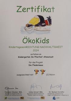 Bereits seit 14 Jahren vergibt der bayerische Naturschutzverband LBV (Landesbund für Vogel- und Naturschutz) mit Unterstützung des Bayerischen Staatsministeriums für Umwelt- und Verbraucherschutz die Auszeichnung „ÖkoKids – KindertageseinRICHTUNG NACHHALTIGKEIT“ an Kitas, die sich mit wichtigen Umwelt- und Nachhaltigkeitsthemen auseinandersetzen.