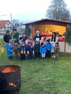 Am ersten Advent sangen die Kindergartenkinder auf dem Untereicher Weihnachtsmarkt bei Familie Brugger. Weihnachtslieder und ein Fingerspiel wurden vorgetragen. Die Kinder wurden dann von Nikolaus und Knecht Ruprecht überrascht und erhielten eine kleine Überraschung.