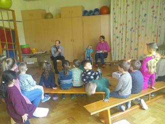 Kürzlich besuchte uns Herr Pfarrer Kleinle im Adventskreis. Er erzählte uns von Jesus und segnete unseren Adventskranz. Die Kinder freuen sich immer sehr über den Besuch.
