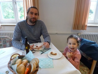 Anschließend wurde der Kindergarten gestürmt. Im Pfarrsaal konnten die Papas mit ihren Kindern gemütlich Abendbrot essen. Am reich gedeckten Buffet fand sich für jeden etwas.