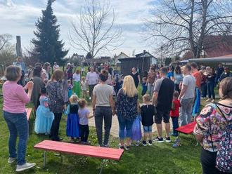 Bei der Filzinger Maibaumfeier (30. April 2023) stand schon unser zweiter großer Auftritt vor der Tür. Mit den Liedern „Die Blumen tanzen Rock’n Roll“ und „Ich lieb den Frühling“ versuchten wir endlich den Frühling aufzuwecken und ernteten großen Applaus.