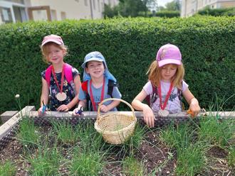 Dann zogen wir weiter übers Gelände. Ein Teil zu den Hochbeeten auf der Suche nach Schnittlauch und Basilikum und der andere Teil durch den Kräutergarten auf der Suche nach Lavendel. Wir staunten ganz schön, wie viel unterschiedliche Kräuter es gibt und wie die alle riechen.