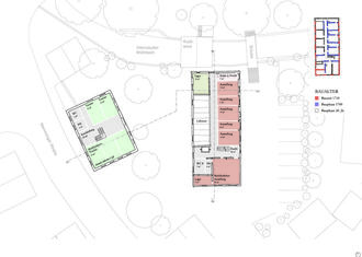 Der älteste Teil des Gebäudes, der südliche „Kopf“, wird ohne wesentliche Eingriffe erhalten und der Zugang bleibt unverändert. Ein großes „Schaufenster“ öffnet den Bürgersaal zum Vorplatz, sorgt für gute Belichtung und gibt dem Raum Weite. Zur Sanierung müssen die Fundamente im nördlichen Teil freigelegt werden, was die Chance bietet, den Saal deutlich abzusenken und eine angenehme Raumhöhe zu schaffen. Ein Teil der Fachwerkstruktur und der Außenwände im Obergeschoß soll freigelegt und sichtbar gemacht werden. Dadurch entsteht ein Luftraum über dem Saal und eine Blickbeziehung zum Obergeschoß. Ansonsten wird die kleinteilige Raumstruktur, ehemals jüdische Wohnungen, aus der Mitte des 18. Jahrhunderts erhalten und bietet Raum für bürgerschaftliche Nutzungen, wie ein historisches Archiv, Räume für Ausstellungen und Vereine.