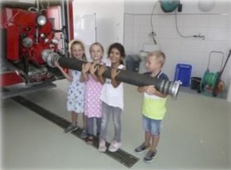 Dort wurde uns das Feuerwehrhaus und das Feuerwehrauto gezeigt und genau erklärt. Außerdem durften wir mit dem großen Schlauch spritzen – der hatte vielleicht Power! Mit dem Feuerwehrauto fuhren wir zu jedem von uns nach Hause und hupten ganz stolz. Unsere Eltern staunten nicht schlecht – mit einem Feuerwehrauto zu fahren ist schließlich etwas ganz Besonderes.