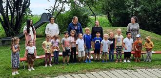 Die Kinder sangen Lieder und trugen ein Fingerspiel vor. Die Erzieherinnen bedankten sich beim Elternbeirat für die gute Zusammenarbeit mit einem kleinen Geschenk und auch der Elternbeirat hatte eine tolle Überraschung für das Kiga-Team vorbereitet. Die Vorschulkinder trugen zum Abschied ein Gedicht vor und überreichten eine neue Messlatte mit den Namen der Vorschüler als Erinnerung.