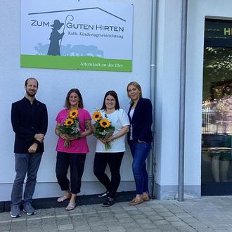 Im September 2023 feierten zwei Mitarbeiterinnen unserer kath. Kindertageseinrichtung Zum Guten Hirten ihr Dienstjubiläum. Karin Möst, pädagogische Ergänzungskraft, feierte ihr 30-jähriges Dienstjubiläum. Elisabeth Mehrbrodt, pädagogische Fachkraft und stellvertretende Kita – Leitung, blickt auf 20 Jahre pädagogische Arbeit zurück. So viele Jahre in der gleichen Kita zu arbeiten ist heutzutage eine Besonderheit. Im Laufe der Jahre erlebten sie viele Veränderungen und bauliche Maßnahmen in unserer Kindertageseinrichtung. Mit gleichbleibender Freude, viel Herzblut und großer Flexibilität meisterten sie ihre Aufgaben.