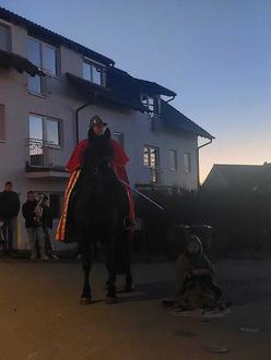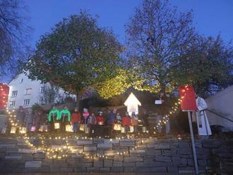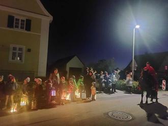 Im Anschluss fand ein Martinsspiel statt. Danach gings gemeinsam mit vielen bunten Lichtern durch die Straßen von Filzingen. An verschiedenen Singstationen machten wir halt, dort begleiteten uns die Filzinger Musikanten bei unseren Martinsliedern.