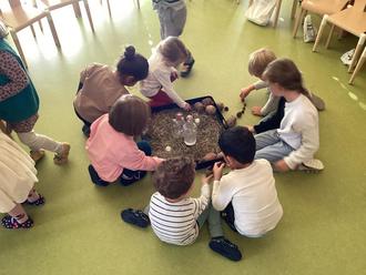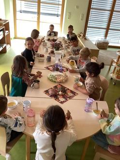 Eigentlich war das Fest für unsere Eltern und Großeltern im Garten angedacht, aber der Herbsttag war leider nicht für eine Outdoor-Party geeignet. Planänderung: Ein Fest für die Kinder. Das Kartoffelfest begann mit einem bunten Morgenkreis, in dem die Kinder in fröhlicher Runde Wissenswertes über Kartoffeln erfuhren.