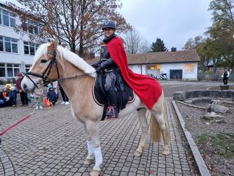 Unser herzlicher Dank gilt den vielen Gästen, die diese Feier so besonders gemacht haben. Ein großes Dankeschön geht auch an das Hofgut Ölmühle sowie an den Vorstand Peter Schmid vom Reitverein Illertissen und an unsere Reiterin Joanne Potsch für den beeindruckenden Auftritt mit dem Pferd, an die Firma Otto Garne aus Balzheim für die nachhaltige Spende der Laternenstäbe, die wir aus leeren Spindeln kreativ wiederverwenden durften, und natürlich an die Feuerwehr Altenstadt für die Absicherung des Umzugs.