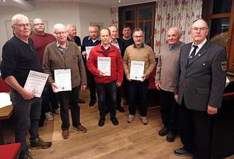 Für 40 Jahre wurden geehrt: Bernd Birk sen., Dietmar Birk, Georg Birk, Robert Birk, Luitpold Blum, Gerhard Dirr, Helmut Dirr, Arno Haunschild, Ernst Heger, Hubert Henkel, Helmut Klimmer, Erwin Lang, Heinrich Mayer, Werner Merkle, Peter Sieber, Dieter Stöhr.