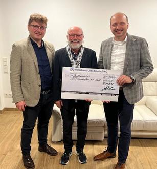 von links: stellv. BGM K. Zanker; E. Aspacher; A. Schulze (Vorstand stellv. Sprecher Volksbank Ulm-Biberach eG.)