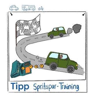 Symbolbild Spritspartraining. Zeichnung Esther Schmid, Landratsamt Neu-Ulm.
