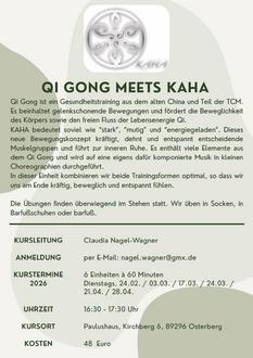 Gönnen Sie sich jetzt im Paulushaus Qigong mit Kaha – für Einsteiger und Fortgeschrittene. Mit Ihrer Teilnahme unterstützen Sie zugleich die Turmsanierung in Osterberg. Es gibt nur noch wenige Restplätze, schnelles Entscheiden lohn sich! Die Gruppe ist bunt gemischt von 18 bis 75 Jahren – hier darf sich jede und jeder angesprochen fühlen. Alle weiteren Informationen entnehmen sie bitte dem Flyer.