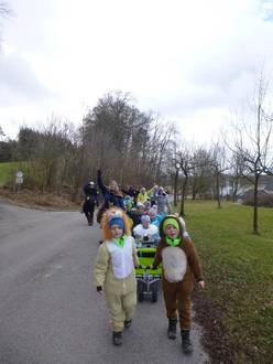 Auch unsere Faschingsparty am 09.02.2024 war ebenfalls ein voller Erfolg, genauso wie der hauseigene Rosenmontagsumzug durch Filzingen. Auch dort begleiteten uns die Grias Boale, als wir mit lauter Musik und unserem eigenen Zunftschrei „KIGA- FILZI“ durch den Ort zogen. Nach dem Umzug wurden leckere Krapfen und Getränke von unserem Elternbeirat verkauft.