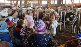 Ein weiterer Höhepunkt war der Ausflug zum Bauernhof der Familie Merkle. Dort konnten die Kinder hautnah erleben, wie das Leben auf einem Bauernhof aussieht. Wir beobachteten die Kühe und Kälbchen hautnah und haben gelernt, wie wichtig diese Tiere für die Landwirtschaft sind und welche Lebensmittel aus der gewonnenen Milch gemacht werden. Die strahlenden Gesichter im Kuhstall zeigten, wie begeistert alle waren.