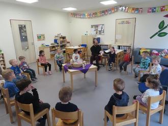 In der Karwoche besuchte Herr Pfarrer Kleinle alle unsere sechs Gruppen. Die Kinder haben sich hierfür im Morgenkreis versammelt. Die Ereignisse zu den Tagen in der Karwoche und das Osterfest boten zahlreiche Gesprächsanlässe. Auch die selbsthergestellten Osterkerzen wurden gesegnet.