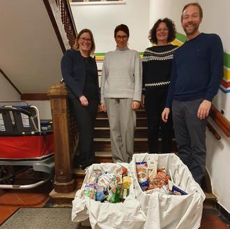 Wie jedes Jahr überreichte auch dieses Jahr der Elternbeirat der Kita Kunterbunt Lebensmittelspenden an die Traunsteiner Tafel. In der Adventszeit haben Eltern und Kinder in der Kita zwei große Kisten mit Konserven, Nudeln, Keksen und vielen anderen Leckereien gesammelt. Am 16. Dezember wurden die Spenden an Claudia Haider, die Vorsitzender der Traunsteiner Tafel e. V., übergeben. Haider freute sich sehr über die Spenden, die in Traunstein an Bedürftige weitergegeben werden. Ein herzliches Dankeschön geht an alle Spender.