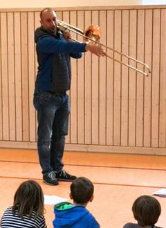 Die Musikschullehrer haben die Blasinstrumente bereits in den Schulklassen vorgestellt. Dazu durften die Kinder Querflöte, Klarinette, Saxofon, Trompete, Tenorhorn und Posaune ausprobieren – ein einmaliges Erlebnis und ein großer Spaß für die Kinder.