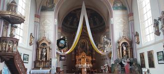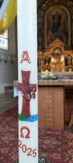 "Ganz zufällig findet sich auf unserer Osterkerze auch ein Schmetterling", fügte Kohl am Ende der Osternacht hinzu und weiter: "wir haben sogar elf Schmetterlinge in der Kirche" freute er sich. Dabei verwies er auf die diesjährigen zehn Erstkommunionkinder, die sich auf einer Tafel in der Kirche mit selbst gestalteten Schmetterlingen präsentieren. Er bedankte sich am Ende gemeinsam mit Pater Joan bei Mesnerin Petra Hoffmann für die Gestaltung der Osterkerze und den mithelfenden Händen zum Gelingen des österlichen Hochfestes. Beim Ostergottesdienst um 10 Uhr wurde das Hochamt musikalisch vom Kirchenchor und einem Streicherttrio unter Leitung von Kirchenmusiker Stephan Wahl gestaltet. Im Anschluss konnten sich die kleinen Gottesdienstbesucher zur Belohnung rund ums Pfarrheim die Verstecke des Osterhasen aufsuchen und schmecken lassen. Aber auch die Erwachsenen bekamen nach der Speisenweihe am Ausgang ein Osterei. Ein großes Vergelt's Gott allen die mitgewirkt haben.