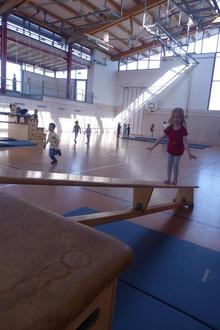 Nach dem aufwärmen z. B. Hampelmänner und ein paar wichtigen Regeln ging es im Rundlauf durch die Bewegungslandschaft: Wippen, Ringschaukeln, Kriech und Rutsch Station, balancieren,… Vielen Dank an Maria Portenkirchner, die uns beim Aufbauen der Bewegungslandschaft geholfen hat.