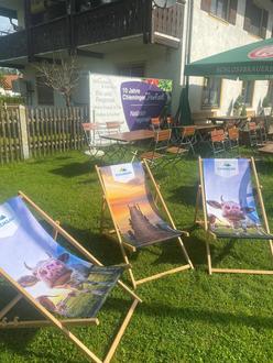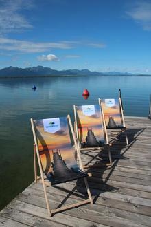 Infolge einer Abfrage des Chieming Tourismus Marketing-Teams bei touristischen Leistungsträgern nutzten Alois Gastager vom Strandbad sowie Maria Naglschmidt vom Dorfladl diese Gelegenheit am intensivsten, um schließlich jeweils gleich mehrere der neuen Chiemgauer Liegestühle zu erwerben. Die Liegestuhl-Bestellung und -Lieferung wurde über die örtlichen Tourismusorganisationen zusammen mit dem Chiemgau Tourismus organisiert und koordiniert, sodass die bequemen Stühle an touristisch attraktiven Plätzen nun zum „Chillen“ und Genießen bei den Chiemgauer Betrieben einladen. Die mit Chiemgau-Motiven versehenen Liegestühle stehen den Kunden bereits seit Anfang Mai bereit und werden in der kommenden Sommerzeit sicherlich noch vielen weiteren „Sonnen-Anbetern“ zu einer entspannten Zeit am Chiemsee-Ostufer verhelfen.