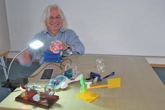 Gerhard Marx von der Energieagentur Südostbayern verdeutlicht den Schülerinnen und Schülern die Energieerzeugung anhand praktischer Beispiele.