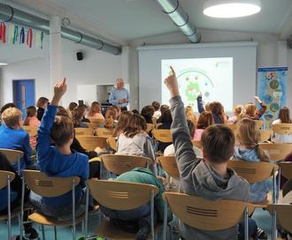 Die Grundschüler der 3. und 4. Klasse erfahren in dem praxisorientierten Workshop „Energie und Klimaschutz“ mit Bildern und Versuchen, woher der Strom kommt, was der Energie-Drei-Sprung bedeutet und warum der CO2-Fußabdruck wichtig ist und wieviel Dinge des täglichen Schülerlebens CO2 Emissionen verursachen. „Schon die Kleinsten für das Energiesparen zu motivieren und zu erneuerbaren Energien aufzuklären, ist sehr wichtig, weil sie die Energieverbraucher von morgen sind“, so Mühlbacher-Kreuzer. Um das Thema zu vertiefen und auch Familien zu informieren, überreichte der AUV am Ende des Workshops für jedes Kind die Rätsel- und Mitmach-Broschüre „Der Energie-Sparfuchs – zeigt dir die Welt der Energie“, die das Bayerisches Landesamt für Umwelt herausgegeben hat.