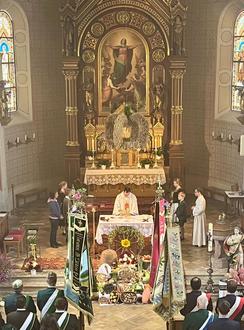 Pater Gabriel-Anton dankte am Ende des Gottesdienstes allen Helfern, Spendern, Musikern, Vereinen und Ministranten, die zum Gelingen des Festtages beigetragen hatten. Zudem warb er für das diesjährige Kirchweihfest am 19.10.2025 mit Einkehr im Pfarrsaal, denn die Pfarrkirche feiert heuer ihr 140jähriges Jubiläum.