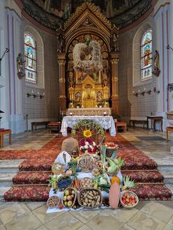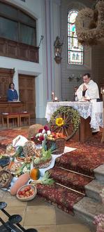 Pater Gabriel-Anton freute sich über die zahlreichen Gottesdienstbesucher und erinnerte in seiner Predigt daran, wie wichtig ein bewusster und dankbarer Umgang mit der Schöpfung und dem eigenen Wohlstand sei. Liebevoll geschmückt mit bunten Erntegaben wie Getreide, Obst, Gemüse und Blumen, spiegelte der Altarraum die Vielfalt und Fülle der Natur wider.