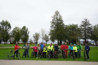 Foto: ©Chiemsee-Alpenland Tourismus Die Teilnehmer sind bereit für den Praxisteil der Ausbildung: die Sundowner-Radtour.