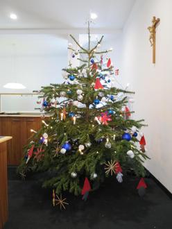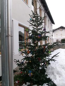 Der Tannenbaum vorm Eingang der Kita Kunterbunt wurde von Seiten des Elternbeirates zusammen mit den Kindern geschmückt. An einen Nachmittag wurde gemeinsam mit den Kindern dafür gebastelt.