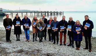 BürgermeisterInnen und TouristikerInnen der neuen „6 am Chiemsee“ aus Breitbrunn, Gstadt, Seeon-Seebruck, Chieming, Grabenstätt, Übersee mit ihrem neuen gemeinsamen Gastgeberverzeichnis 2025