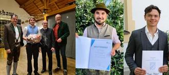 Konrad Kecht jr. und Paul Neubert (zum Empfang nicht anwesend) wurden für ihren erfolgreichen Meisterabschluss geehrt, Michael Mayer (ebenfalls nicht anwesend) für seinen Abitur-Abschluss mit 1,0. Linkes Bild (Foto Bernd Nitschke): 2. Bürgermeister Markus Brunner, Bürgermeister Stefan Reichelt, Konrad Kecht jun. und 3. Bürgermeister Josef Mayer. Mittleres Bild (Foto privat): Paul Neubert, Rechtes Bild (Foto Kirsten Benekam für das Traunsteiner Tagblatt): Michael Mayer
