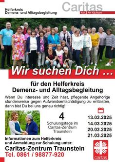 Auch dieses Jahr bietet das Caritas-Zentrum Traunstein wieder die Schulung für ehrenamtliche Demenz- und Alltagsbegleiter an.