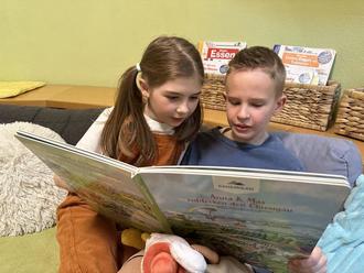 Emilia Greimel und Benjamin Ober von der Grundschule Chieming haben die Texte eingesprochen