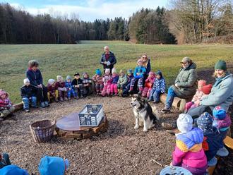Verbandsvorsitzender Graf bei der Übergabe im Waldkindergarten „Spatzennest“ in Hart.