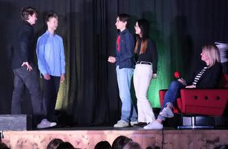 Am Gymnasium Schloss Ising haben zehn Schülerinnen und Schüler in Zusammenarbeit mit dem bayerischen Gesundheitsministerium den Pflegeberuf in einem Theaterstück vorgestellt. „Wir haben Geschichten aus dem Berufsleben umgesetzt, die uns Experten aus dem Pflegebereich der Region erzählt haben, beispielsweise Daniela Grathwohl, Fachwirtin für Gesundheit und Soziales“, verrät zu Beginn Theaterpädagogin Tabea Hildner. „Diese Szenen bringen einen mal sehr zum Lachen, zum anderen berührend sie einen zutiefst.“ Die Isinger schlüpfen bei diesen Szenen in die Rolle von Patienten, Ärzten, Pflegern und Familienangehörigen - ähnlich wie bei den Einspielern zu einer Talkshow. Im Wechsel zu diesen typischen Situationen aus dem Pflegealltag befragt ein Schüler-Moderator eine echte Pflegefachkraft wie Jens Erdmann, Dozent bei der Katholischen Stiftungshochschule in München, über den Pflegeberuf und die Ausbildung dazu.