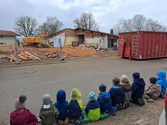 Unser „alter“ Kindergarten hat uns viele Jahre gut beherbergt, jetzt aber wird er abgerissen und wir bekommen einen Neubau.