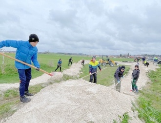 Fleißige Helfer beim Herrichten der Pumptrackstrecke