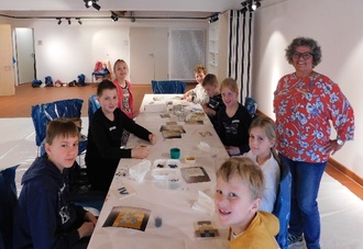 Zu guter Letzt tauchten die Kinder und Jugendlichen in die Vergangenheit ein und gestalteten „Römische Mosaike“ mit speziellen Mosaiksteinen aus Ceraton. Neben unterschiedlichen Mustern wurden auch die Anfangsbuchstaben als Mosaik gelegt und auf eine Holzplatte geklebt.