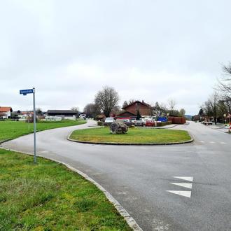 Die vom Gemeinderat im Dezember 2021 beschlossene Baumaßnahme ´Kreisverkehr und Busumkehre´ vor der Grund- und Mittelschule in Chieming,