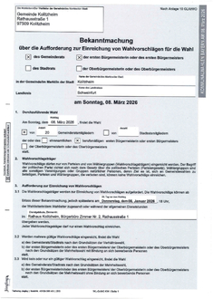 Bekanntmachung Aufforderung Einreichung Wahlvorschläge