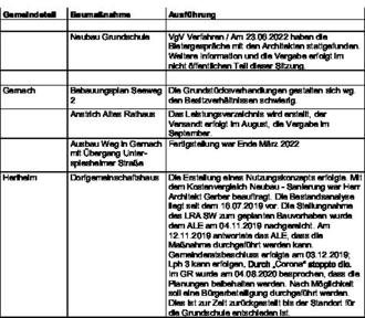Sachstandsbericht zu den gemeindlichen Baumaßnahmen