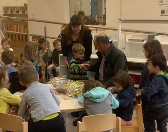 Wir luden ihn in die KiTa ein und sangen ihm ein Geburtstagsständchen. Auch ein kleiner Geschenkkorb wurde ihm überreicht. Siegfried hat sich sehr gefreut und war ganz gerührt von den Glückwünschen der KiTa-Kinder und des Personals und bedankte sich herzlich.