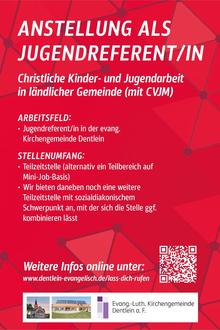 Jugendreferent Simon Rösch hat sich entschieden zum 5. Februar eine neue Stelle anzutreten, die näher an seiner Heimat bei Rothenburg liegt und sich auch im Blick auf die Arbeitszeiten leichter mit den Anforderungen als junger Zwillingsvater in Einklang bringen lässt als die Jugendarbeit, die primär am Nachmittag und Abend stattfindet. Von daher suchen wir nun nach einem Nachfolger bzw. zwei Teilbereichsnachfolgern für Simon: zum einen für die kirchlich-ökumenische Kinder- und Jugendarbeit und zum anderen für die eher sozialarbeiterische Begleitung der Jugendlichen an Treffpunkten wie dem Bauwagen. Simon wird nebenberuflich übergangsweise vorerst weiter das ökumenische Angebot „KidsClub“ leiten, dass im Wechsel im katholischen Pfarrheim in Großohrenbronn und im evangelischen Gemeindehaus in Dentlein stattfindet.